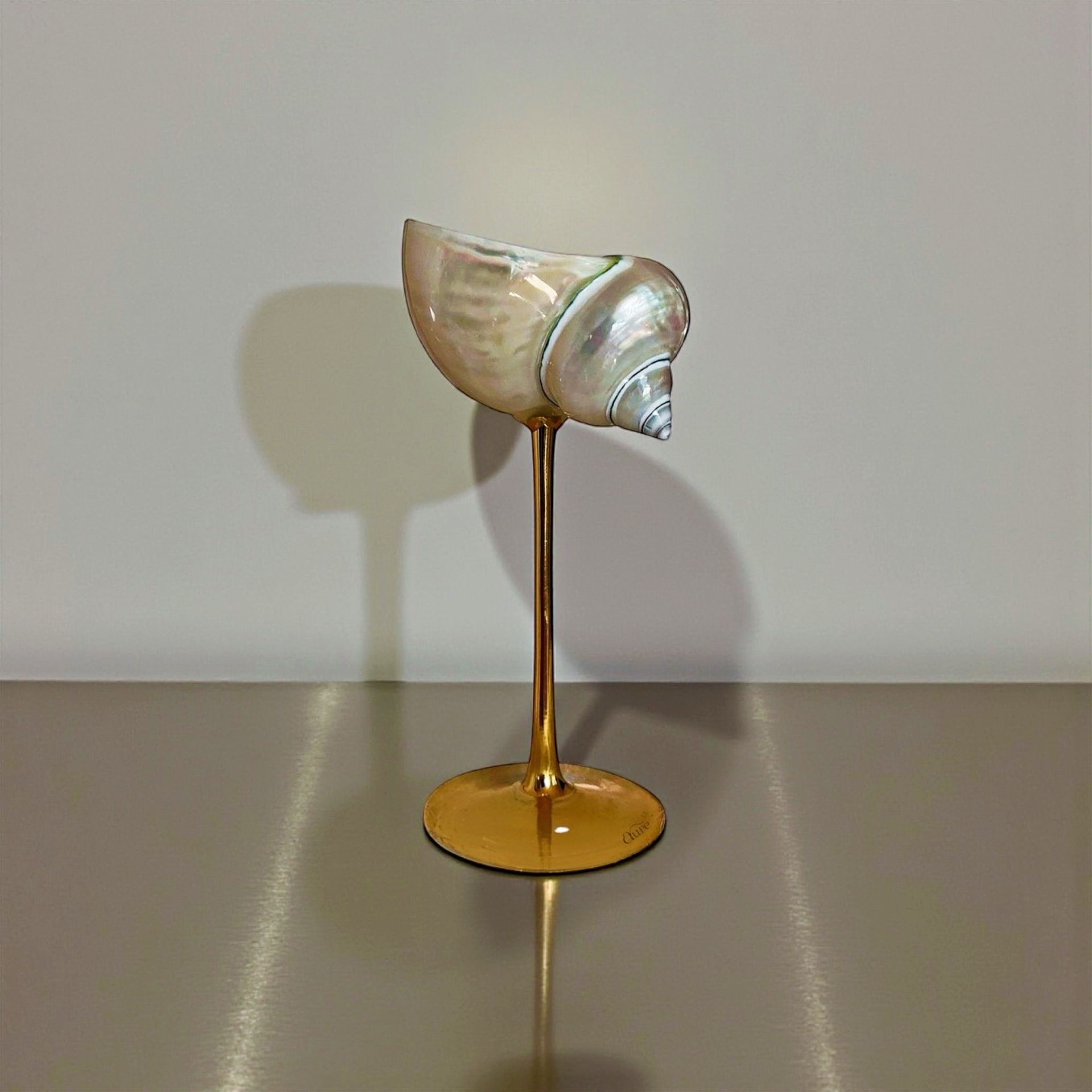 Sertifikalı gerçek deniz kabukları ve özel üretim cam ustalığıyla şekillenen her Aure kadehi, doğanın zamansız estetiğini lüksle buluşturur.